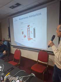 Fabián y su hijo Juan Manuel abordaron la charla en C.E.C.A.F. centrándose primero en las generalidades de un sistema hidráulico para ascensor y las diferentes opciones de instalación y también abordaron los temas del mantenimiento y las fallas de los equipos y cómo solucionarlas. En lo que hace a la central hidráulica, en Argentina como se ha dicho antes, integran componentes importados como la válvula alemana Blain y el motor y la bomba italianos, en conjunción con el cilindro hidráulico 100% argentino.
